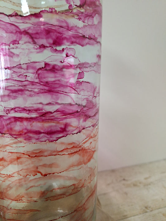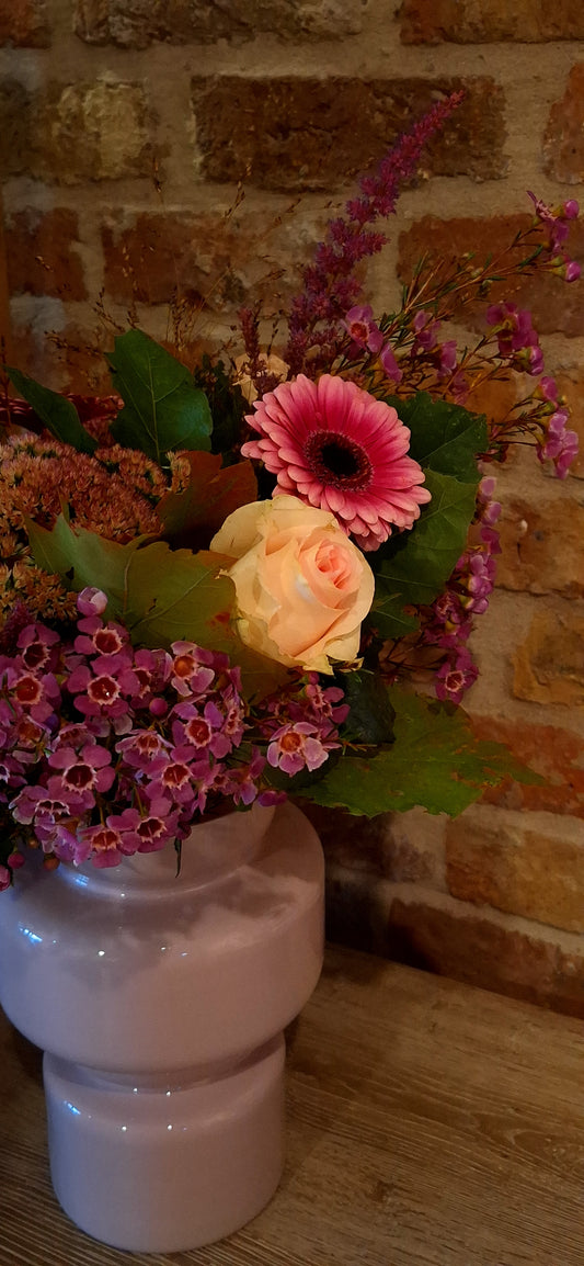 Roze boeket "Amber" in gelakte Nude purple vaas