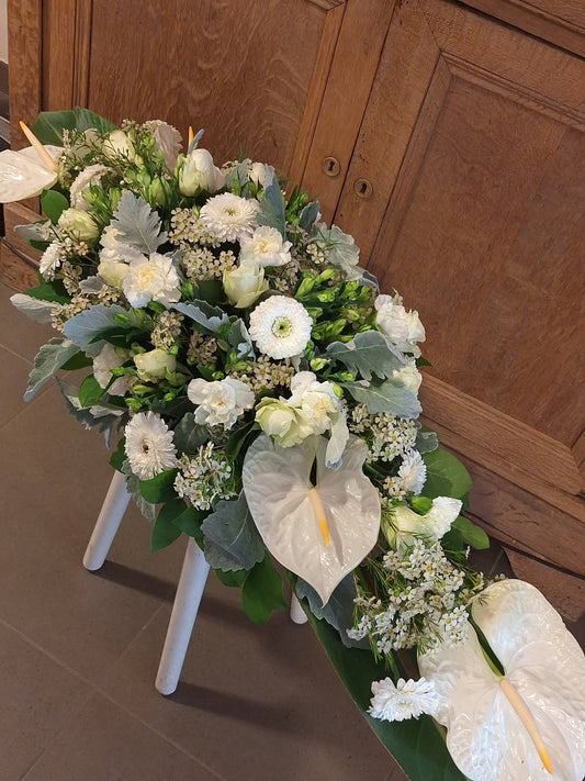 Ik verwerk bloemen met subtiele schoonheid tot een uniek creatie voor een waardig afscheid.