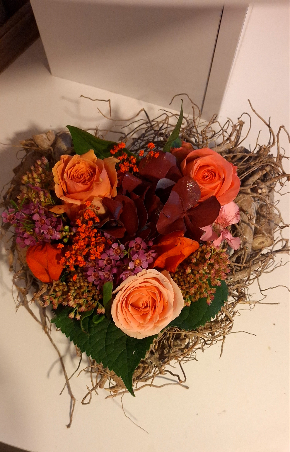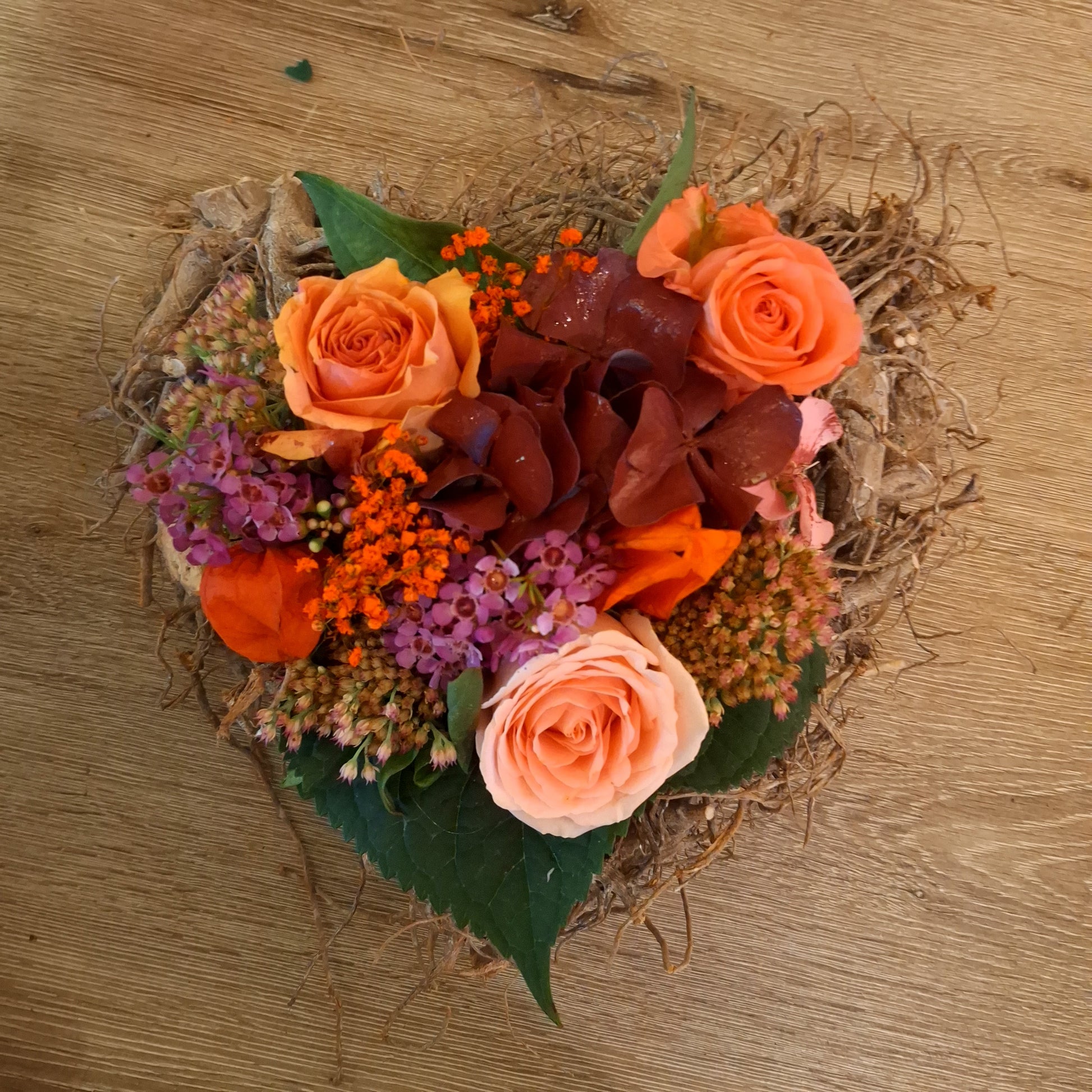 Bloemstuk hart in wilgbasis